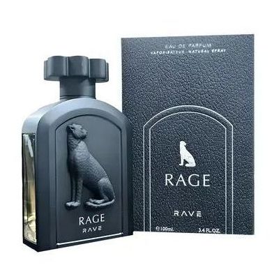 Rage Rave is a fragrance for men. Top notes are apple and mint; middle notes are coriander, freesia, and basil; base notes are incense, patchouli, cashmeran, and labdanum.